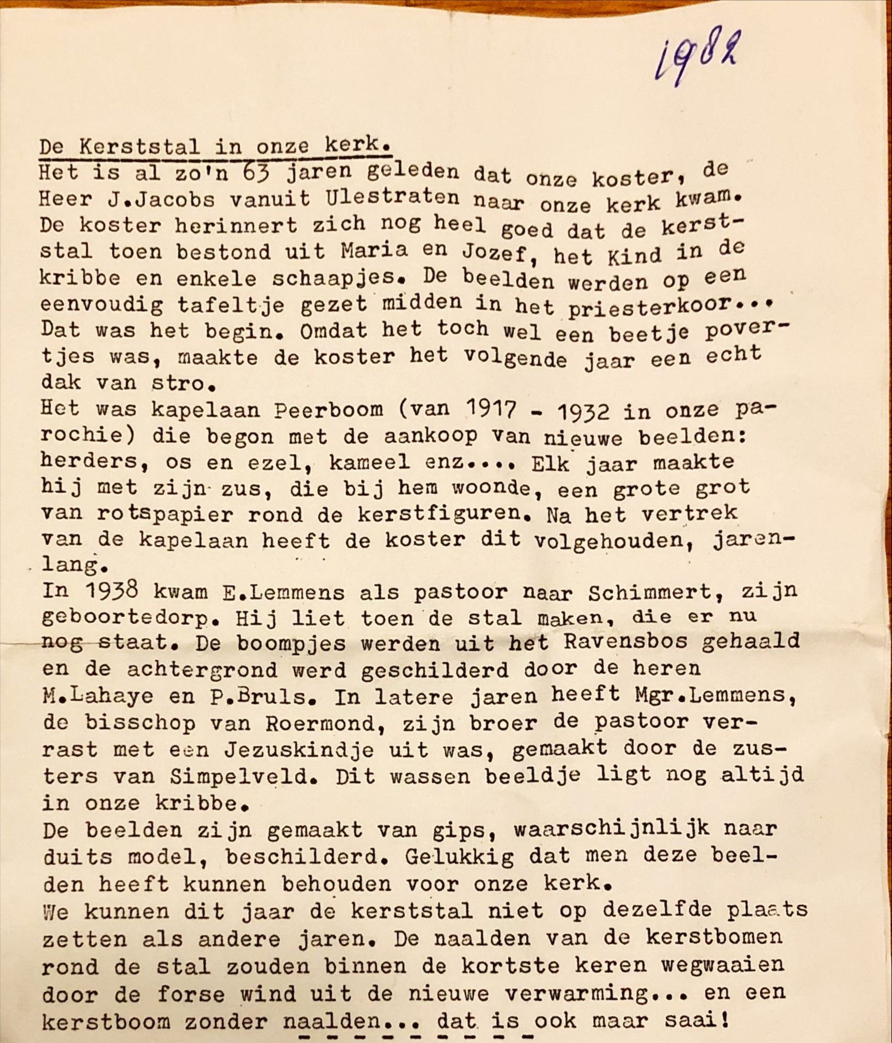 Het thema van de kerstexpositie in de kerk is dit jaar “Wij zijn de stal.....”. De verzameling van emeritus pastoor Van Oss staat dit jubileumjaar centraal.